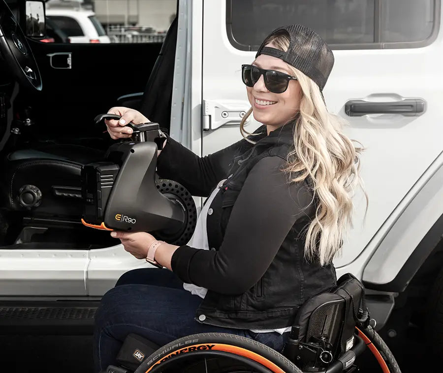 Travel farther with less effort, easily tackle ramps, and relieve strain on your shoulders with the Empulse R90. Its sleek, compact design fits neatly beneath your wheelchair, preserving your chair’s size and turning radius while remaining discreet and intuitive. The secure V-Lock attachment system works with most folding and rigid wheelchairs, and the ergonomic Control Box provides simple, push-button operation. When you don’t need power assist, a quick button press lifts the wheel for zero rolling resistance. Plus, with the Sunrise Intelligence app, you can customize your performance profile to perfectly match your surroundings.